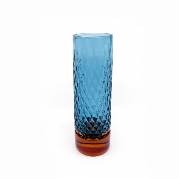 This delicately textured vase – made using a mold-blown technique that is centuries old – is beautifully luminous. A striking amber-colored base adds stability and presence.
