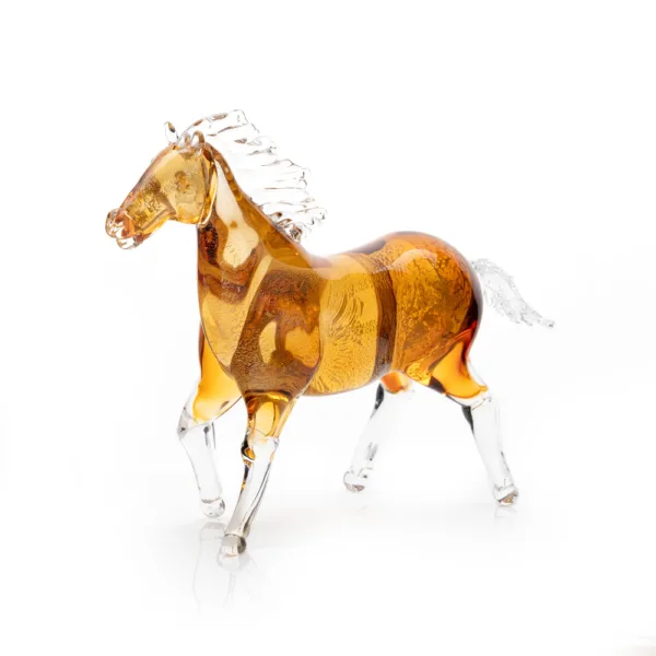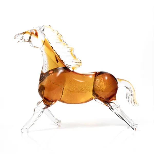 Radiant and full of motion, this a striking collection of hand-sculpted glass horses, each infused with warm amber tones and delicate accents of gold foil. With flowing manes, poised limbs, and expressive stances, these figures capture the power, grace, and untamed spirit of the horse. The golden glow within the glass evokes the fire of the sun, making Sunfire Horse a luminous tribute to strength, freedom, and craftsmanship.